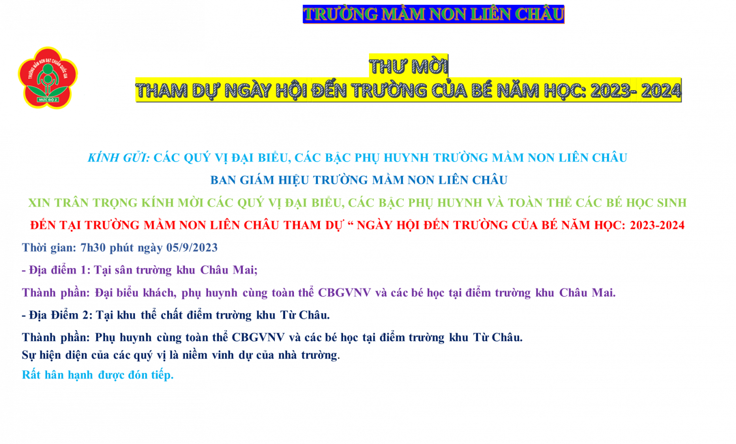 THƯ MỜI DỰ KHAI GIẢNG NĂM HỌC 2023- 2024