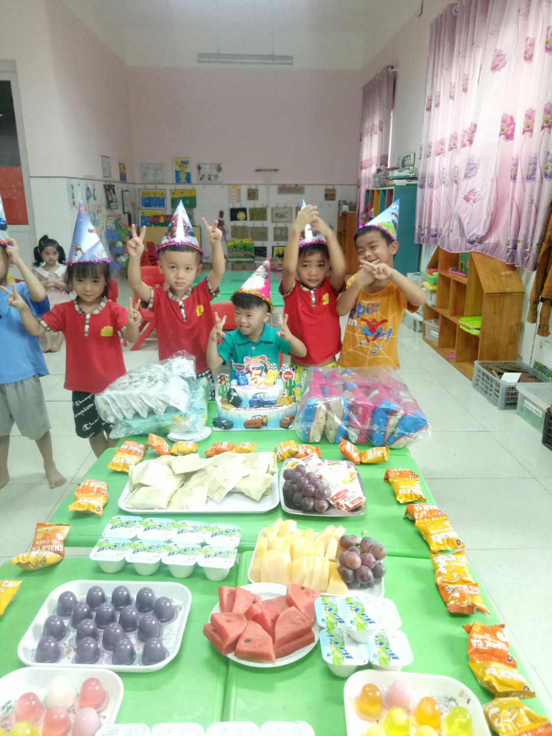 Hàng ngày khi đến trường các con không chỉ được vui chơi với bạn bè mà còn được các cô yêu thương chăm sóc, dạy dỗ. Các cô luôn tạo cho các con môi trường vui vẻ, thân thiện, tạo không khí và tâm lý vui vẻ cho các con khi đến lớp thông qua việc tổ chức các hoạt động trên lớp hàng ngày. Hoạt động tổ chức sinh nhật cho các con là một hoạt động rất ý nghĩa, giúp trẻ mạnh dạn, tự tin, thân thiện hơn khi giao tiếp hòa mình với các bạn trong buổi sinh nhật ngoài ra bữa tiệc sinh nhật tại lớp còn tạo cho trẻ sự vui vẻ phấn khích.