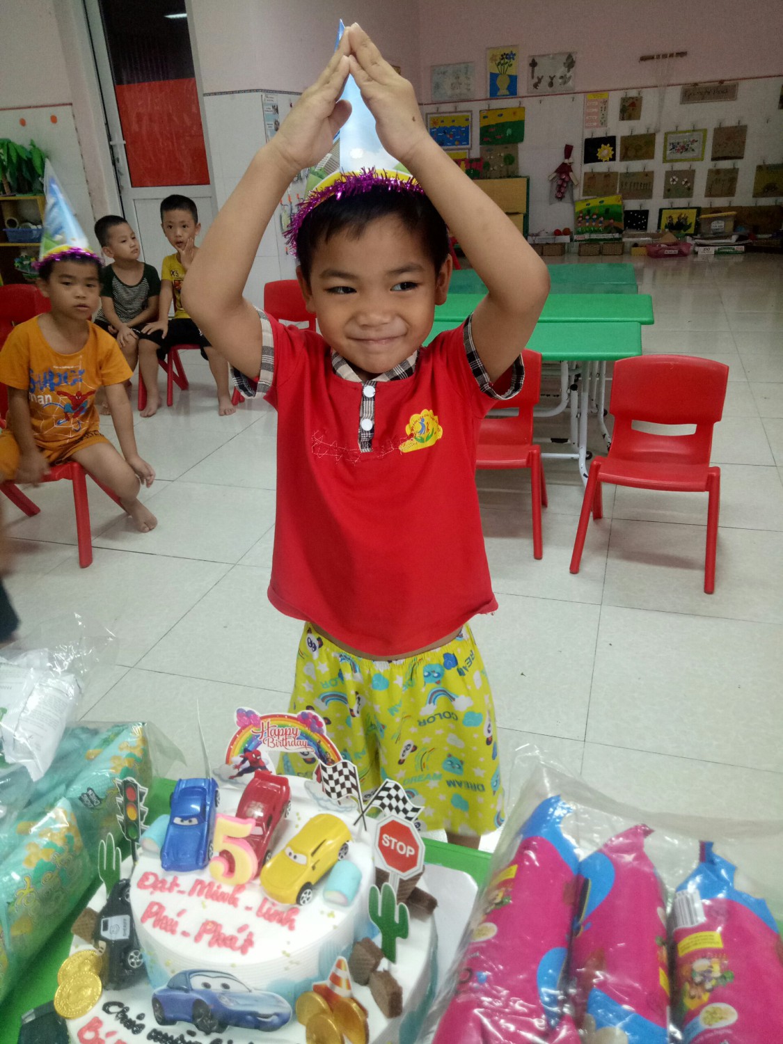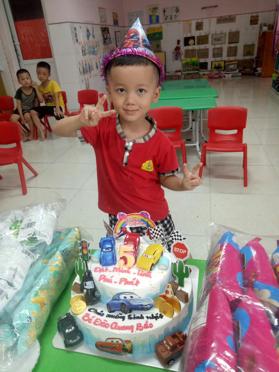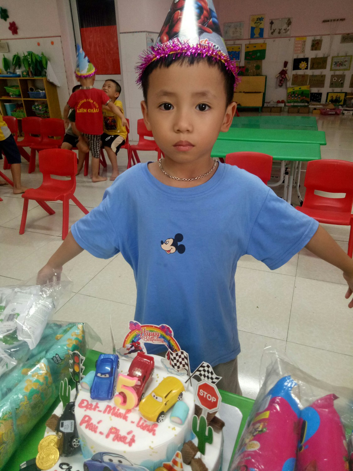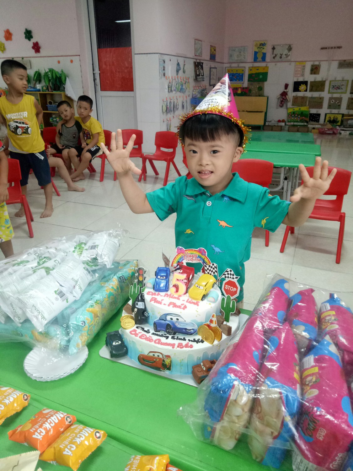 Tiệc sinh nhật tháng 8 của bé đã được tổ chức trong niềm vui, sự ấm áp của các Cô và bạn bè với những lời chúc mừng tốt đẹp, vui thật vui!