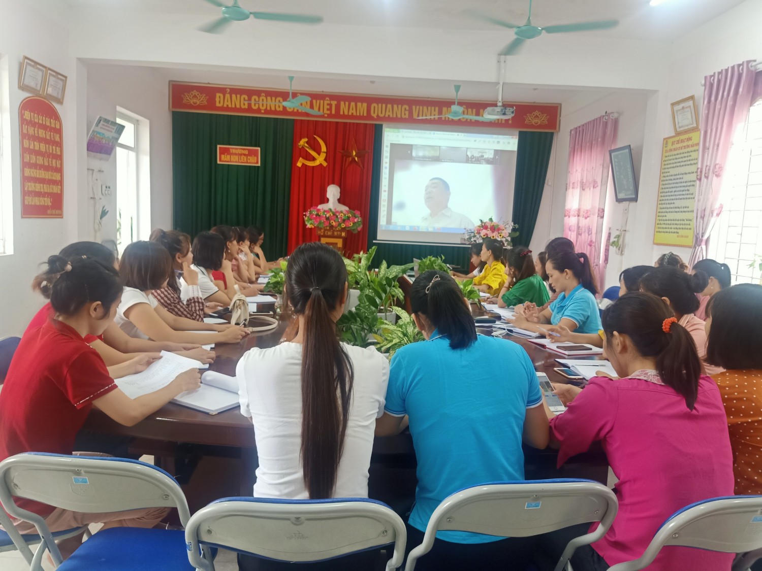 7h 30 phút ngày 21/8/20022, Các đồng chí cán bộ, giáo viê nhân viên đã tập trung tại Văn phòng nhà trường MN Liên Châu để tham gia bồi dưỡng tập huấn Chính trị hè 2022.