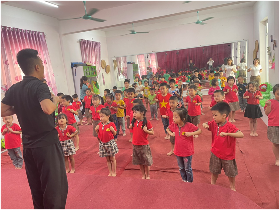 Thứ 7 Thầy Hoàng Như Hải được nghỉ thầy ra trường dạy các con 4-5 tuổi khu Châu Mai- Trường Mầm non Liên Châu môn Võ cổ truyền Việt Nam đúng theo ý nghĩa của võ cổ truyền Việt Nam