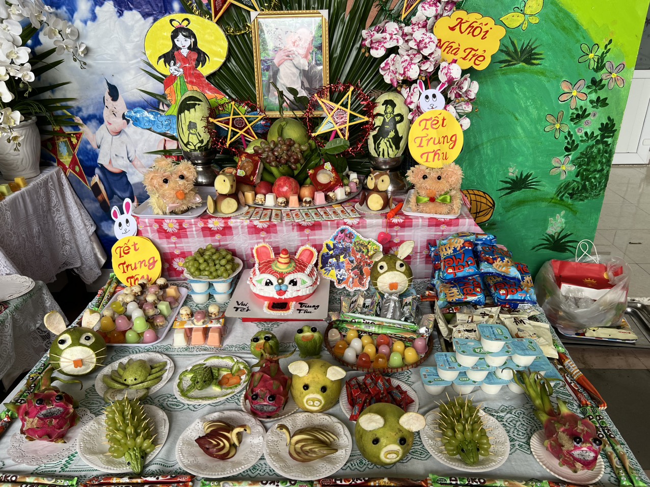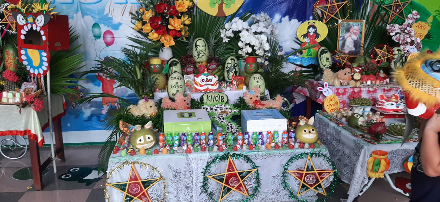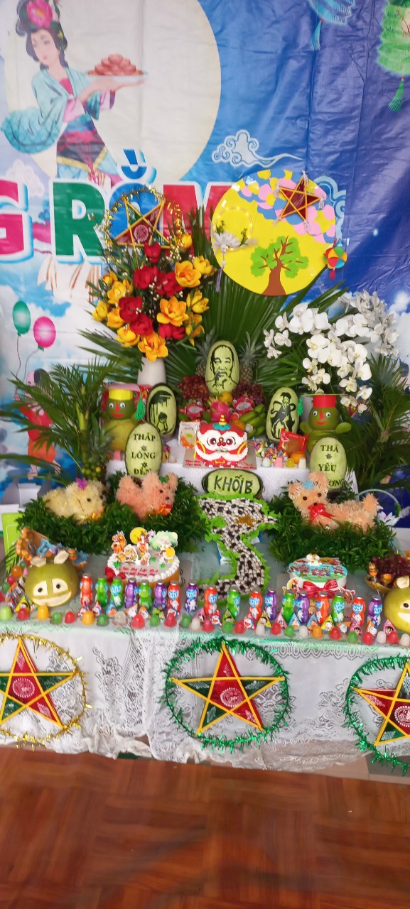 Mặc dù, bận rất nhiều công việc nhưng trong hội trung thu của các con,các bậc phụ huynh đã đến góp sức trong việc bày mâm ngũ quả và ủng hộ trao những phần rất ý nghĩa đến các bé có hoàn cảnh khó khăn và phần thưởng cho những mâm ngũ.