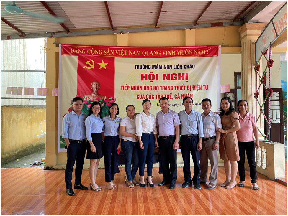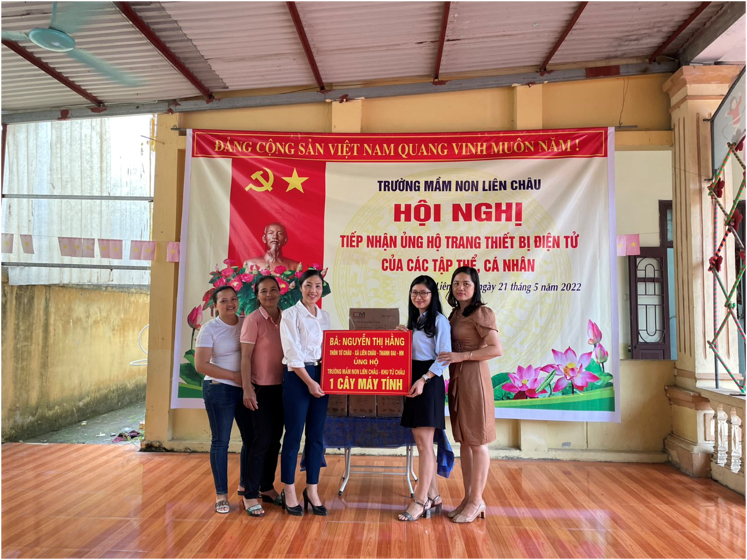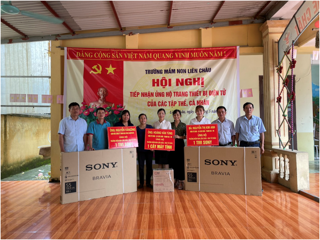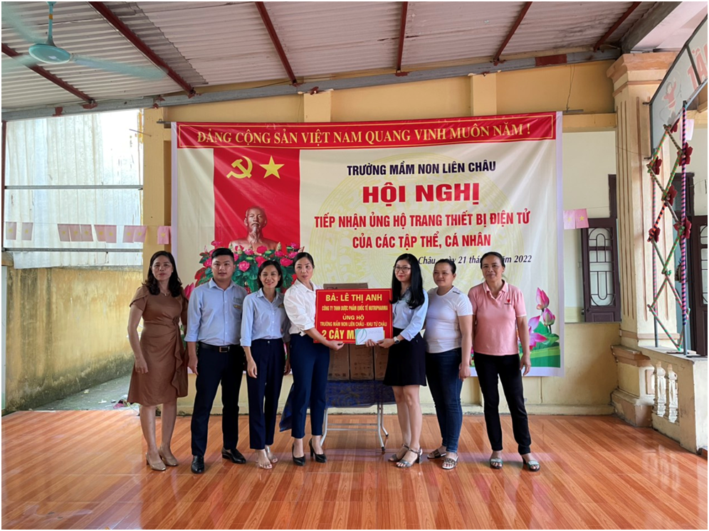 Năm học 2021- 2022 là một năm đặc biệt vì các con không được tới trường trong thời gian nghỉ dịch Covid-19 kéo dài. Ngày 13/4/2022 là ngày tất cả các con ở độ tuổi mầm non được đến trường, đến lớp. Cô và trò trường mầm non Liên Châu háo hức, phấn khởi khi được đến trường đi học, đi dạy trở lại. Với niềm vui đó niềm vui lại được tăng thêm gấp nhiều lần khi mà được các tập thể, các quý công ty, các cá nhân, các mạnh thường hỗ trợ ủng hộ cho cô và trò trường mầm non Liên Châu 06 cây vi tính và 02 chiếc ti vi Sony 55 Inch để các con được tiếp tục được trải nghiêm trên màm ảnh nhỏ vì thời gian nghỉ dịch lâu kèm theo đồ dùng trang thiết bị sử dụng lâu năm đã hỏng và xuống cấp, nhất là các thiết bị điện tử như ti vi, máy tính đa số hỏng nhiều. Ban giám hiệu nhà trường phối hợp với Ban đại diện Cha mẹ học sinh nhờ sự giúp đỡ của các bác lãnh đạo xã, lãnh đạo thôn, các bác lãnh đạo đã nghỉ hưu và nhất là Ông nguyễn Công Khoái- Phó bí thư TTĐU, chủ tịch HĐND xã tư vấn, kêu gọi sự giúp đỡ của Các tập thể, các quý công ty, các cá nhân , các mạnh thường quân ủng hộ cho nhà trường . Dưới đây là danh sách các tập thể, các quý công ty, các cá nhân, các mạnh thường quân ủng hộ cho nhà trường.