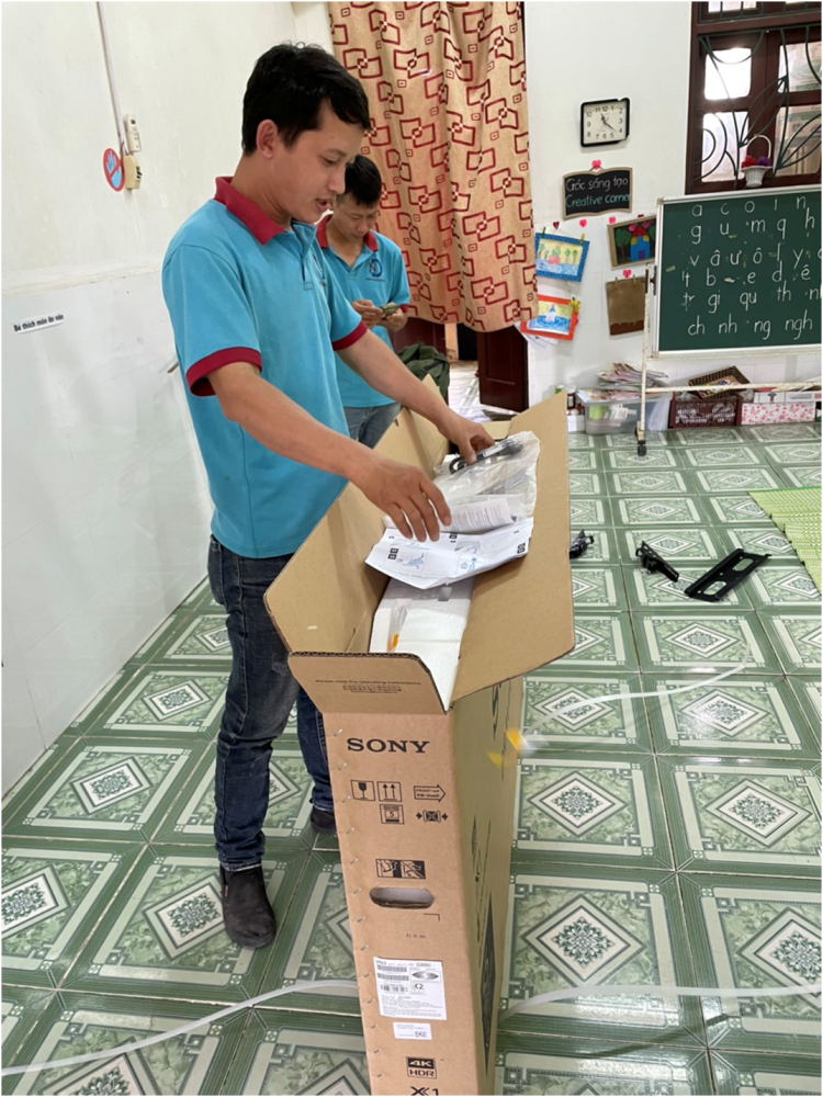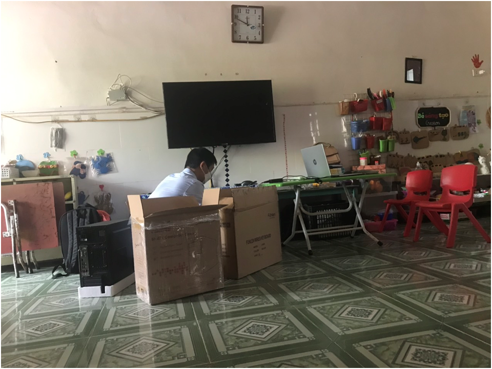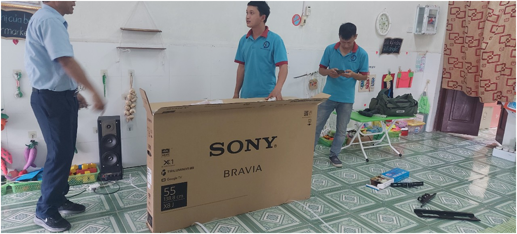 Sau đây là một số hình ảnh, Trao nhận và lắp giáp Tivi và cây máy tính tại trường ngày 21/5/2022 và ngày 25/5/2022