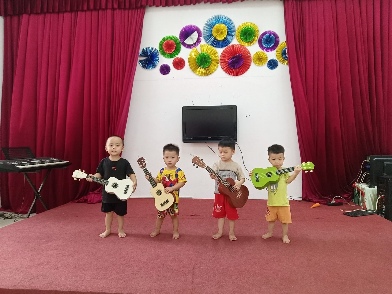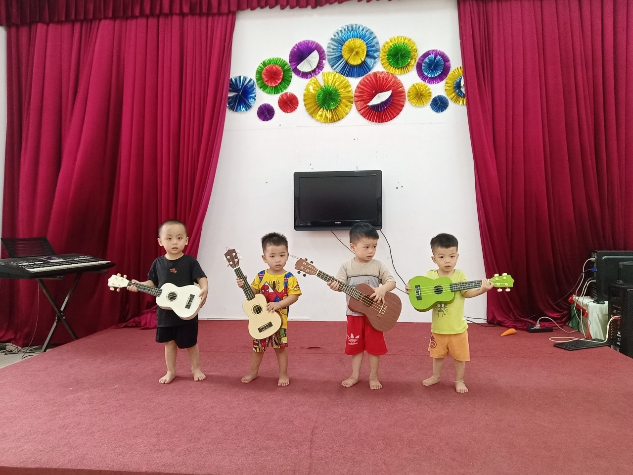 Đây là buổi đầu tiên các bé nhà trẻ được đến vời phòng Âm nhạc.