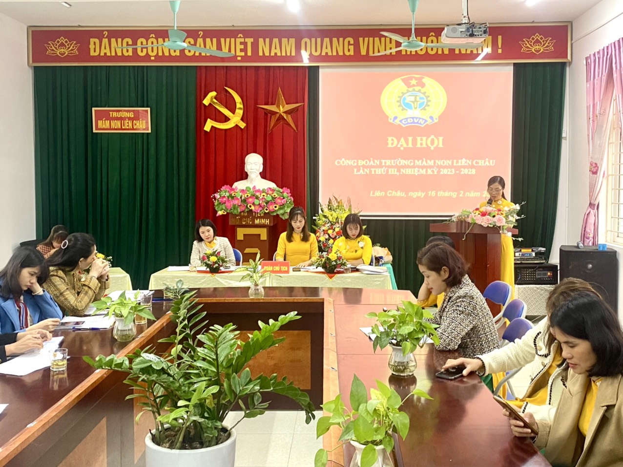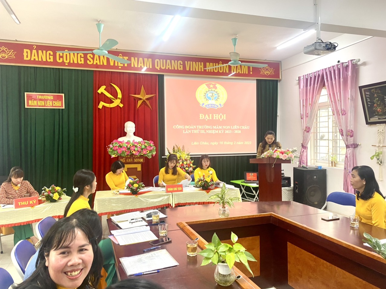 Theo Báo cáo tổng kết hoạt động Công đoàn nhiệm kỳ 2017-2022 và phương hướng, nhiệm vụ nhiệm kỳ 2023-2028 Trong 5 năm qua, có hơn 2 năm chịu ảnh hưởng của đại dịch bệnh Covid-19, phần nào ảnh hưởng đến đời sống của cán bộ, công chức, viên chức và người lao động cũng như việc triển khai các hoạt động phong trào chung của Công đoàn trường mầm non Liên Châu, nhưng dưới sự lãnh đạo của LĐLĐ quận và cấp ủy Chi bộ nhà trường, BCH Công đoàn đã phát huy tốt vai trò của mình cùng với BGH nhà trường chăm lo tốt cho đời sống vật chất, tinh thần và kịp thời các chế độ chính sách cho CNVC người LĐ. Đời sống vật chất, tinh thần của công đoàn viên từng bước được nâng lên; các hoạt động phong trào công đoàn ngày càng sôi nổi, chất lượng, hiệu quả hơn.
