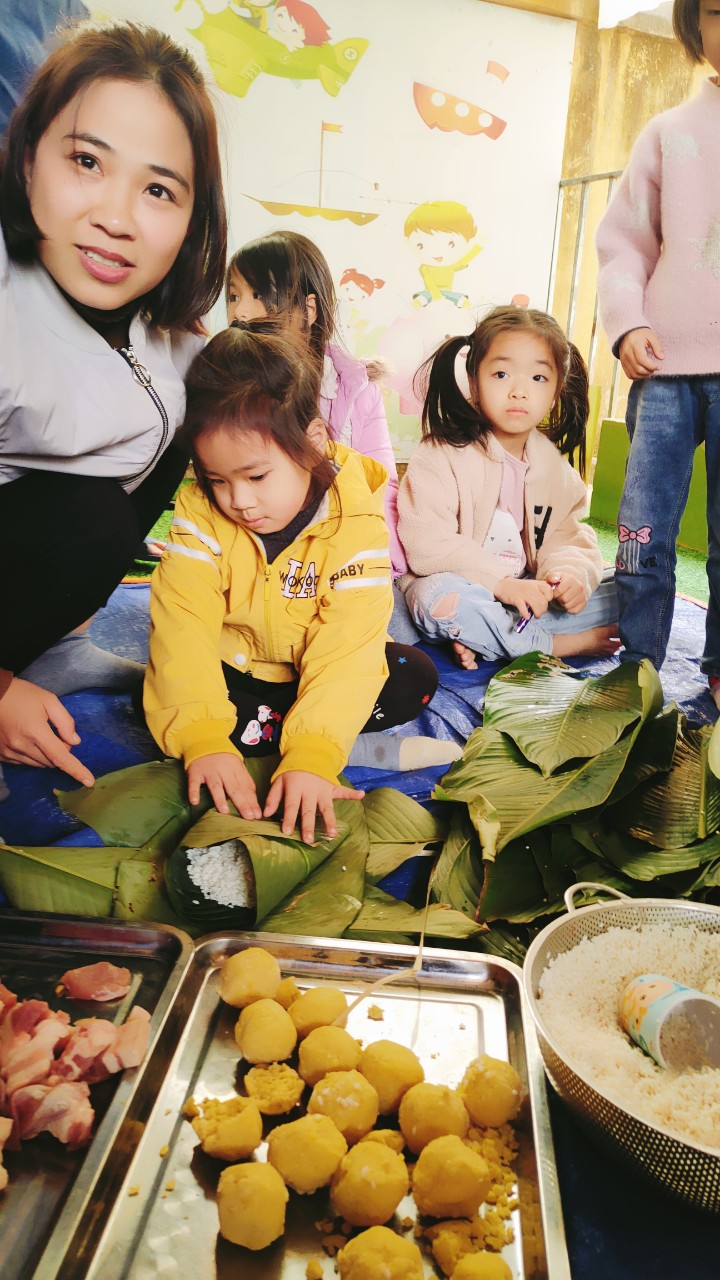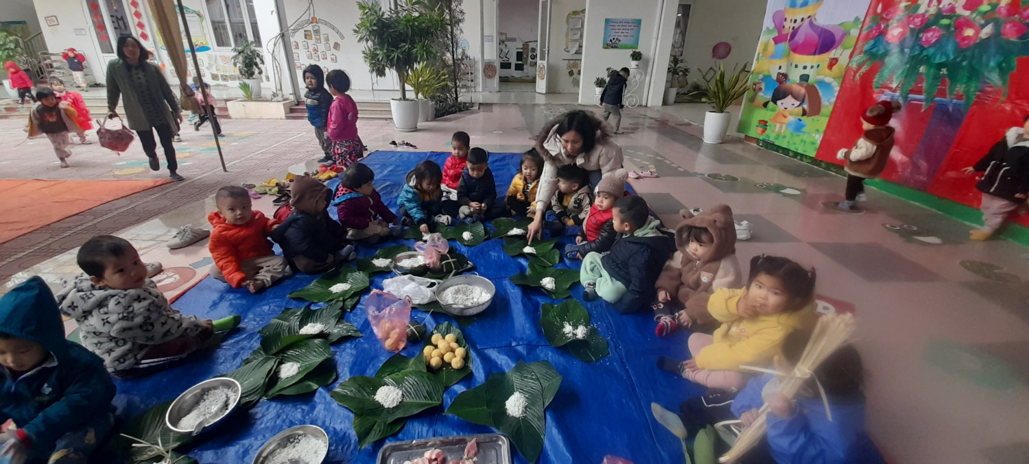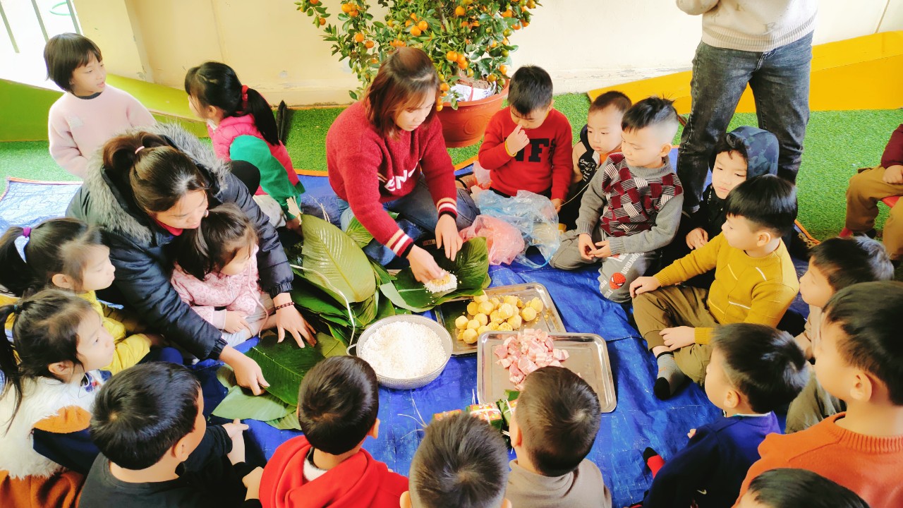 Tết Nguyên đán là ngày tết cổ truyền của dân tộc ta là ngày tết quan trọng nhất trong năm của người Việt, là ngày mọi người trong gia đình được nghỉ và sum họp bên nhau, cùng nhau chuẩn bị các món ăn ngon, sửa soạn trang trí nhà cửa thật đẹp để đón Tết, không khí chuẩn bị đón Tết thật bận rộn nhưng ai nấy đều rất vui. Đế các con hiểu được về truyền thống của dân tộc ta tạo cho các con có một ngày Tết vui vẻ, đầm ấm và hạnh phúc bên người thân. Hòa chung trong không khí rộn rã của ngày Tết Nguyên Đán đang đến gần, cô và trò trường Mầm non Liên Châu cùng với các bậc phụ huynh tổ chức hoạt động trải nghiệm;Gói bánh chưng ngày Tết.