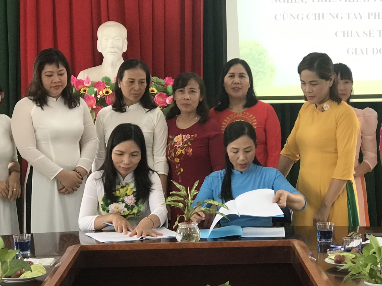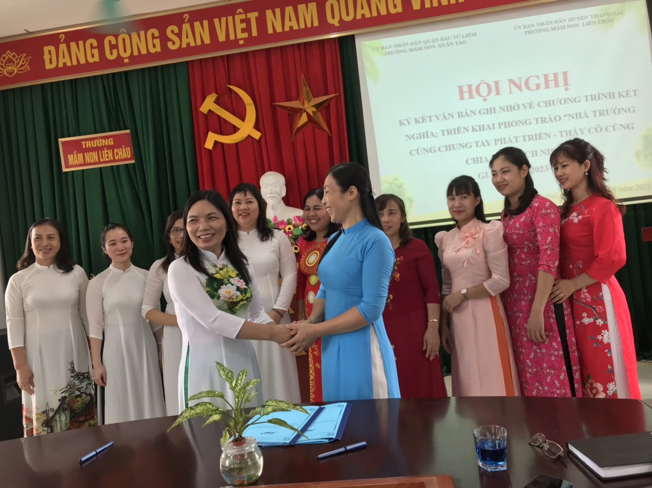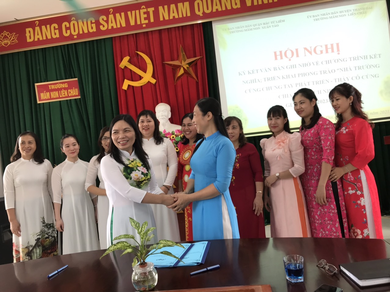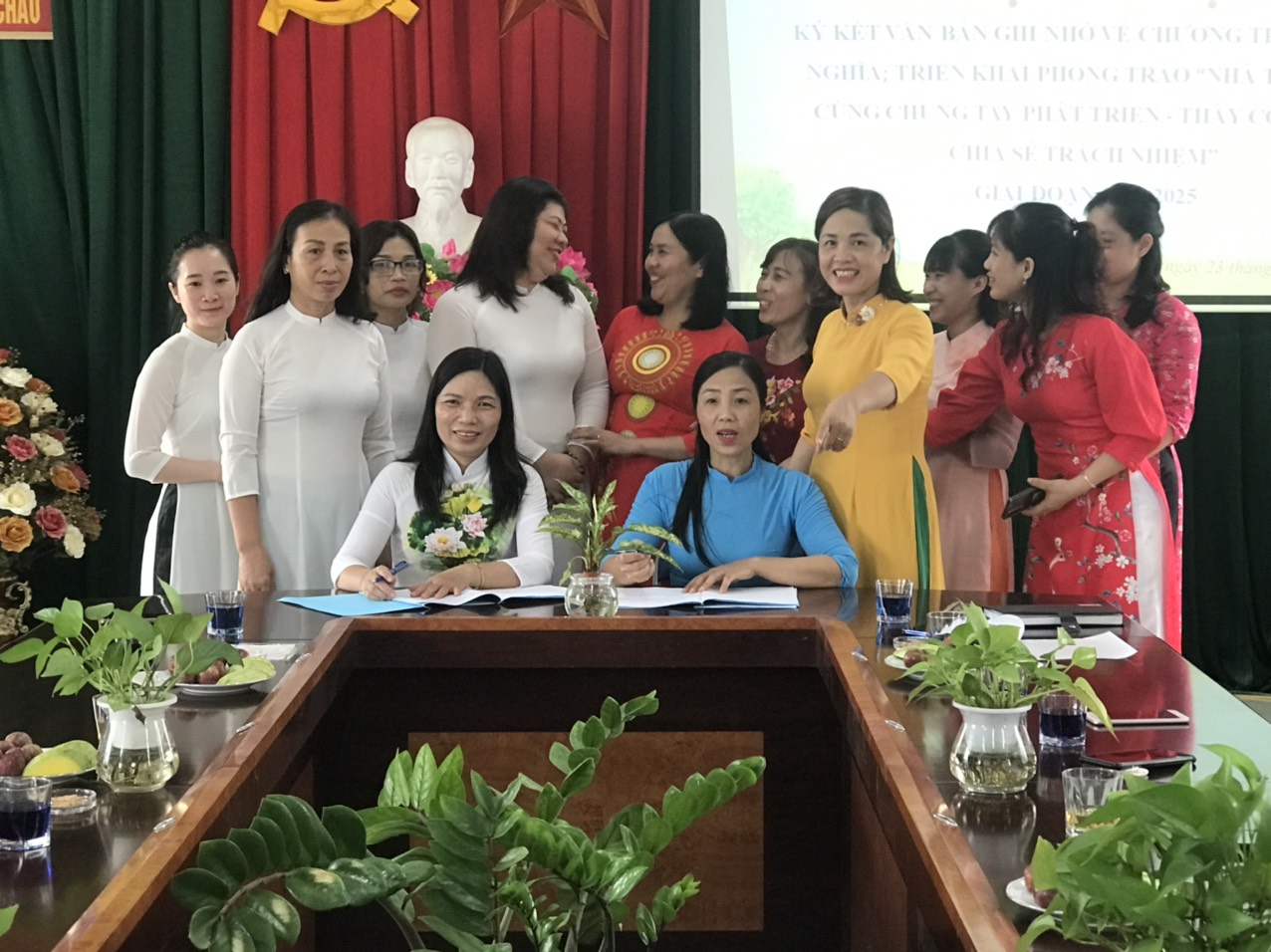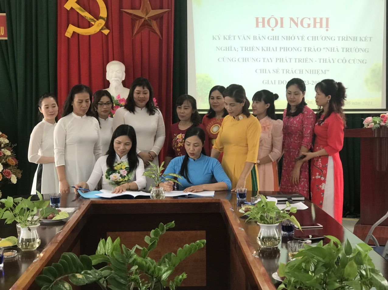 Đã tiến hành trao đổi và đồng thuận nhất trí ký kết Biên bản ghi nhớ về Chương trình kết nghĩa, triển khai phong trào "Nhà trường cùng chung tay phát triển- Thầy cô cùng sẻ chia trách nhiệm" giai đoạn 2023-2025