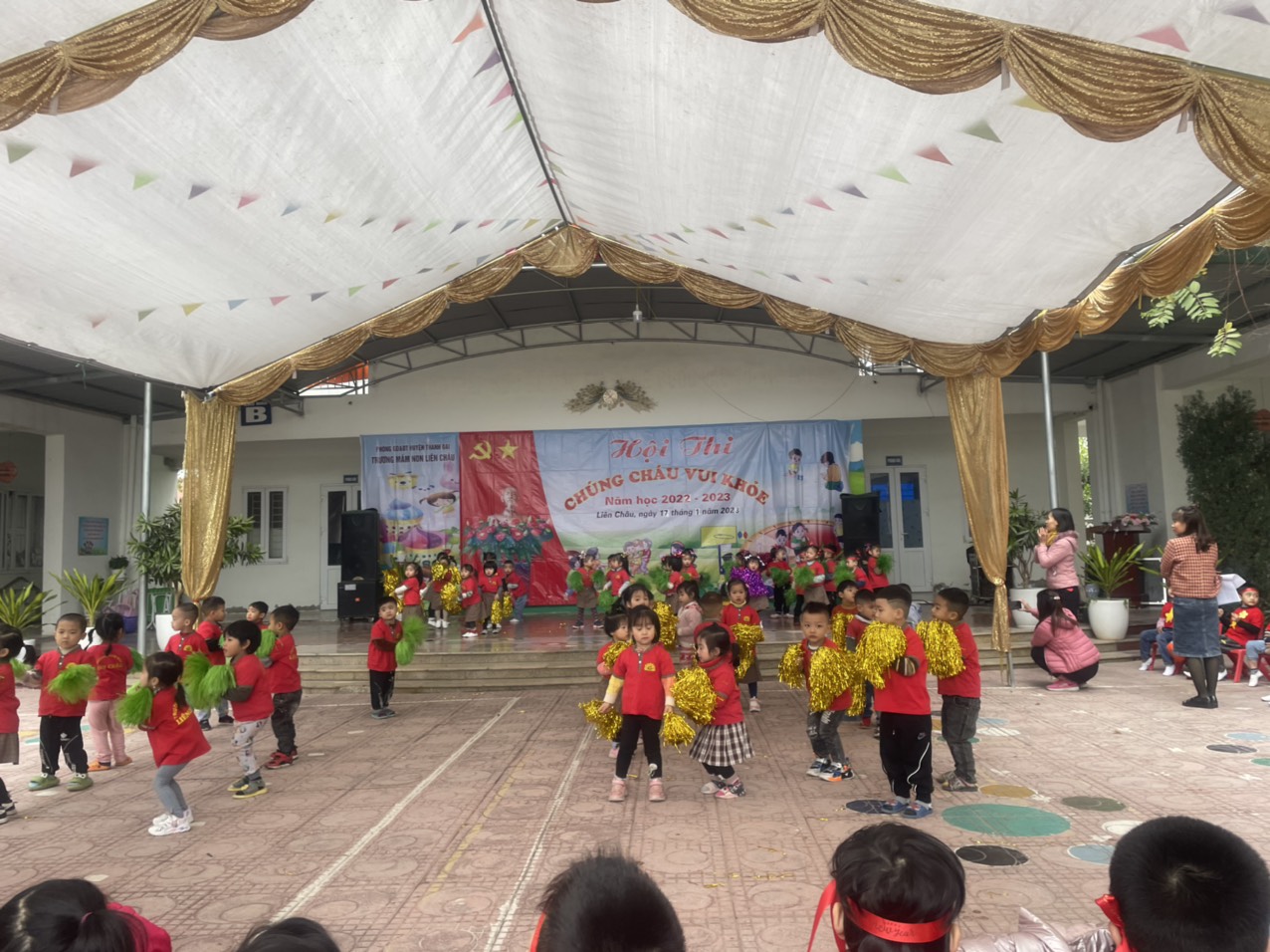 Với mong muốn tạo ra sân chơi bổ ích, tăng cường vận động cho trẻ; tạo cơ hội cho con trẻ được vui chơi, hợp tác và chia sẻ cùng nhau; cũng như tạo sự gắn kết giữa nhà trường, giáo viên, trẻ và phụ huynh. Ngày 17/1/2023, Trường Mn Liên Châu đã tổ chức chương trình “Chúng cháu vui khoẻ” cho tất cả các bé.