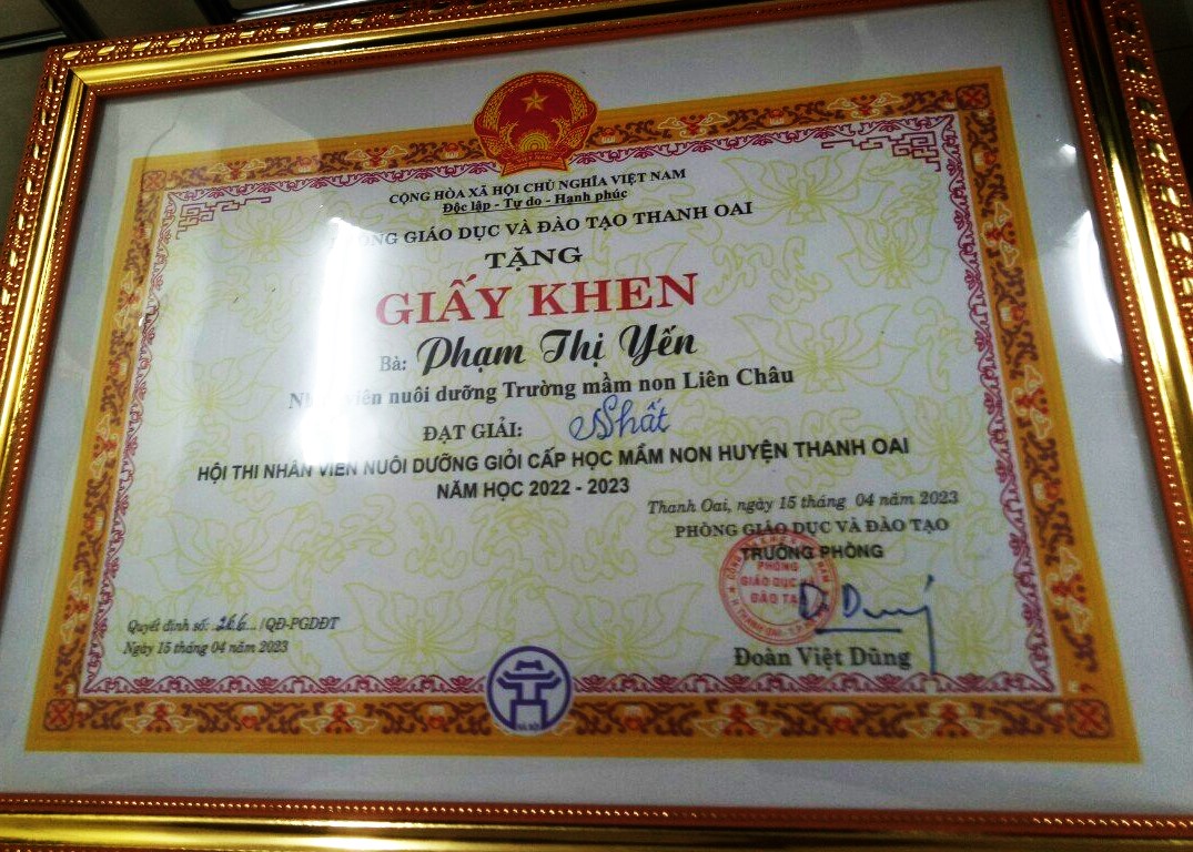 Và đây là thành quả mà trường mầm non Liên Châu đạt được trong hội thi