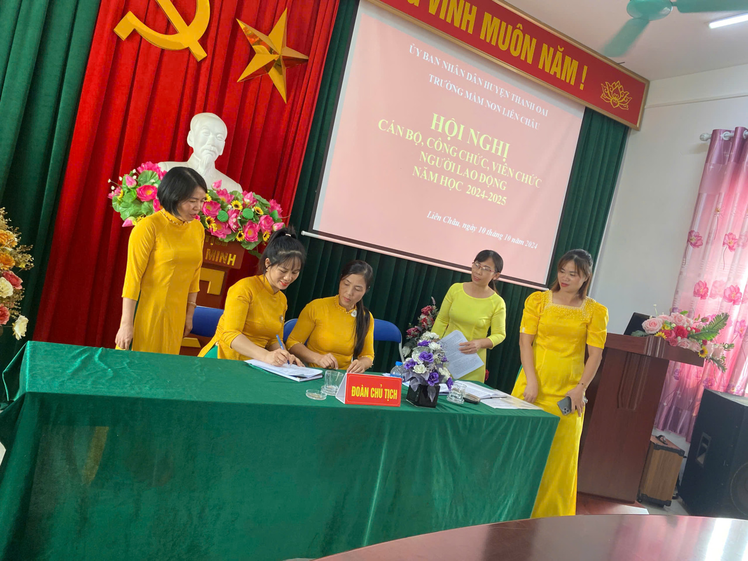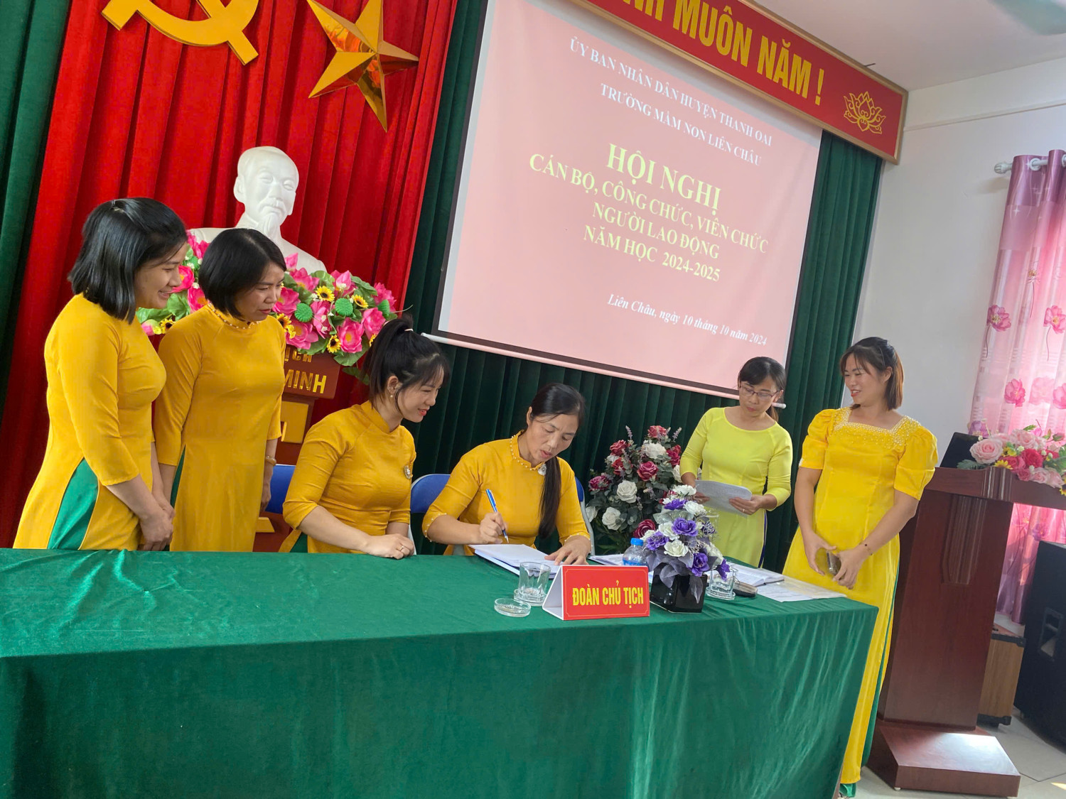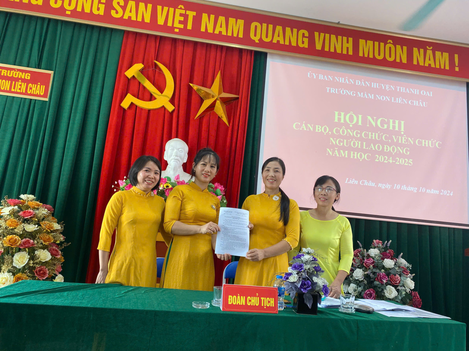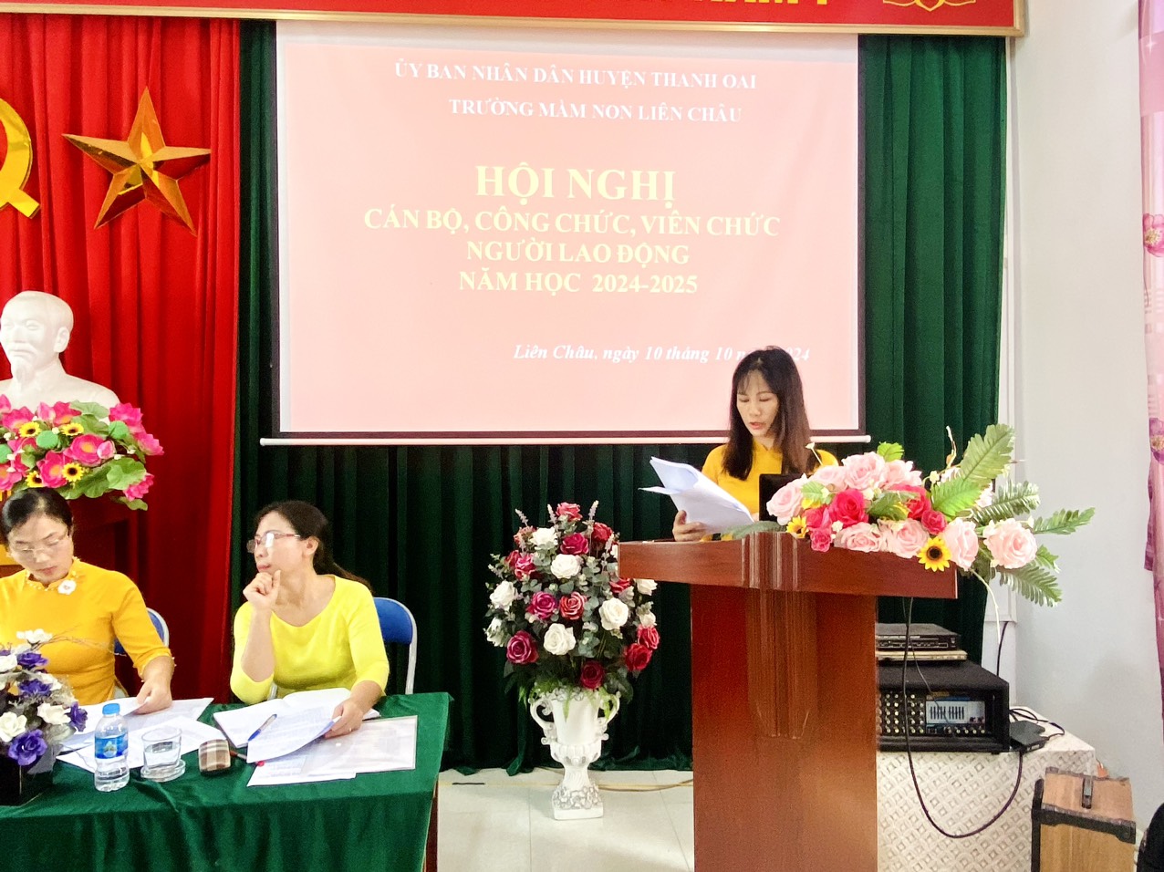 Hội nghị cán bộ viên chức, người lao động năm học 2024 - 2025 của Trường mầm non Liên Châu đã tạo không khí thi đua sôi nổi, tinh thần Đoàn kết – Chung sức – Chung lòng - Phấn đấu đạt được kết quả cao trong năm học đề ra.