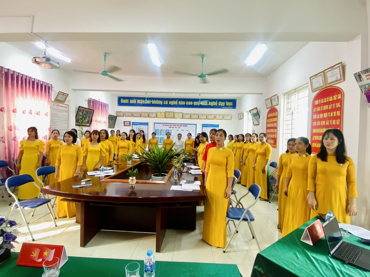 Phát biểu tại Hội nghị, Đồng chí Hoàng Thị Nhàn - Bí thư chi bộ - Hiệu trưởng nhà trường biểu dương những thành tích nổi bật đã đạt được đó là: Trong năm học 2023-2024 nhà trường đã hoàn thành tốt nhiệm vụ theo kế hoạch đã xây dựng, giữ vững danh hiệu “Tập thể lao động tiên tiến”; Đồng thời, đồng chí cũng chỉ ra những hạn chế còn tồn tại trong năm học qua của nhà trường. Trên cơ sở đó, đồng chí đã yêu cầu tập thể CBGVNV nêu cao vai trò trách nhiệm của mình tự học tập, tự bồi dưỡng để nâng cao trình độ, góp phần tích cực vào sự nghiệp giáo dục của nhà trường.
