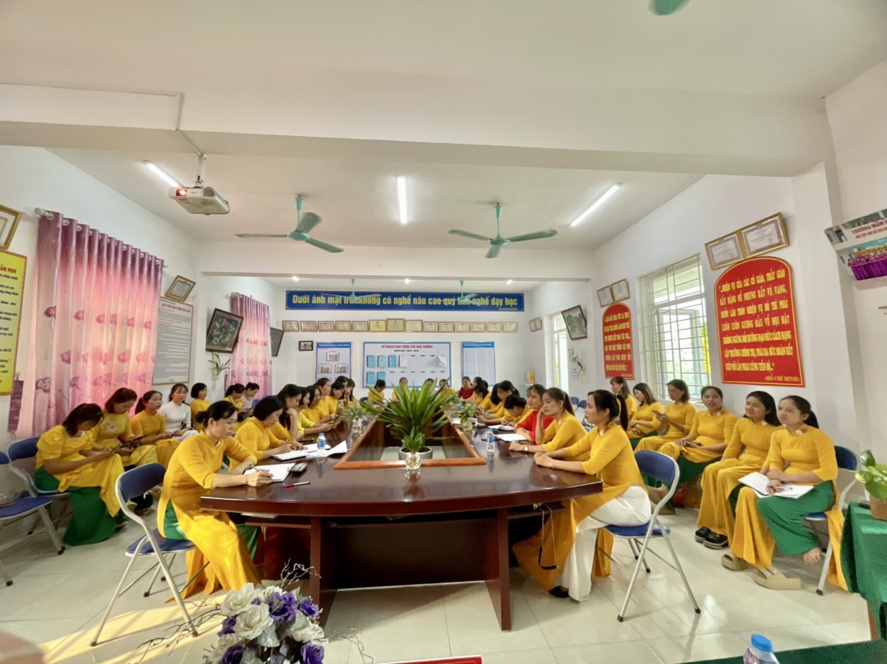Hội nghị được nghe báo cáo thực hiện thu chi ngân sách 9 tháng đầu năm 2024, công tác thu chi theo thỏa thuận năm học 2024-2025, dự thảo QCCT nội bộ, QC làm việc, QCDC,QCTSC...; Báo cáo kết quả hoạt động của Ban Thanh tra nhân dân năm học 2023-2024 và kế hoạch hoạt động của BTTND năm học 2024-2025; Báo cáo kết quả thực hiện phong trào thi đua năm học 2023-2024 và kí cam kết thực hiện nhiệm vụ trọng tâm, các cuộc vận động, các phong trào thi đua năm học 2024-2025.
