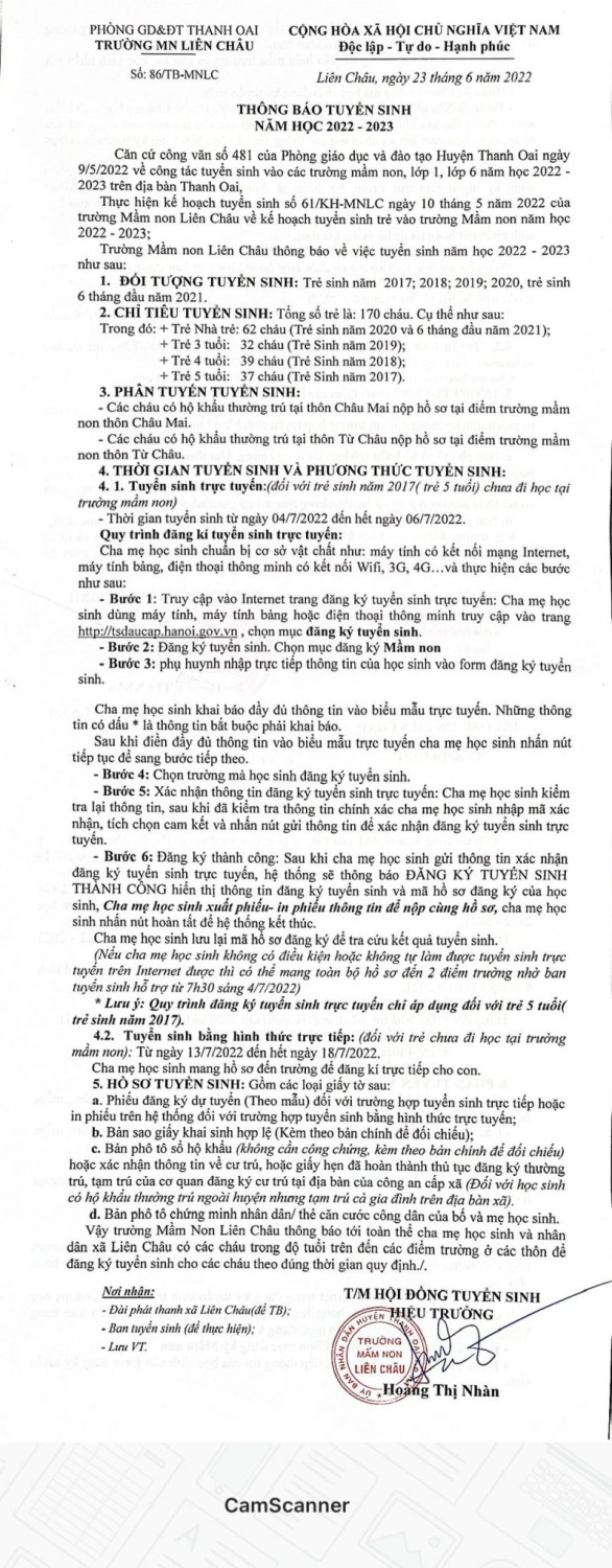 TRƯỜNG MẦM NON LIÊN CHÂU THÔNG BÁO TUYỂN SINH